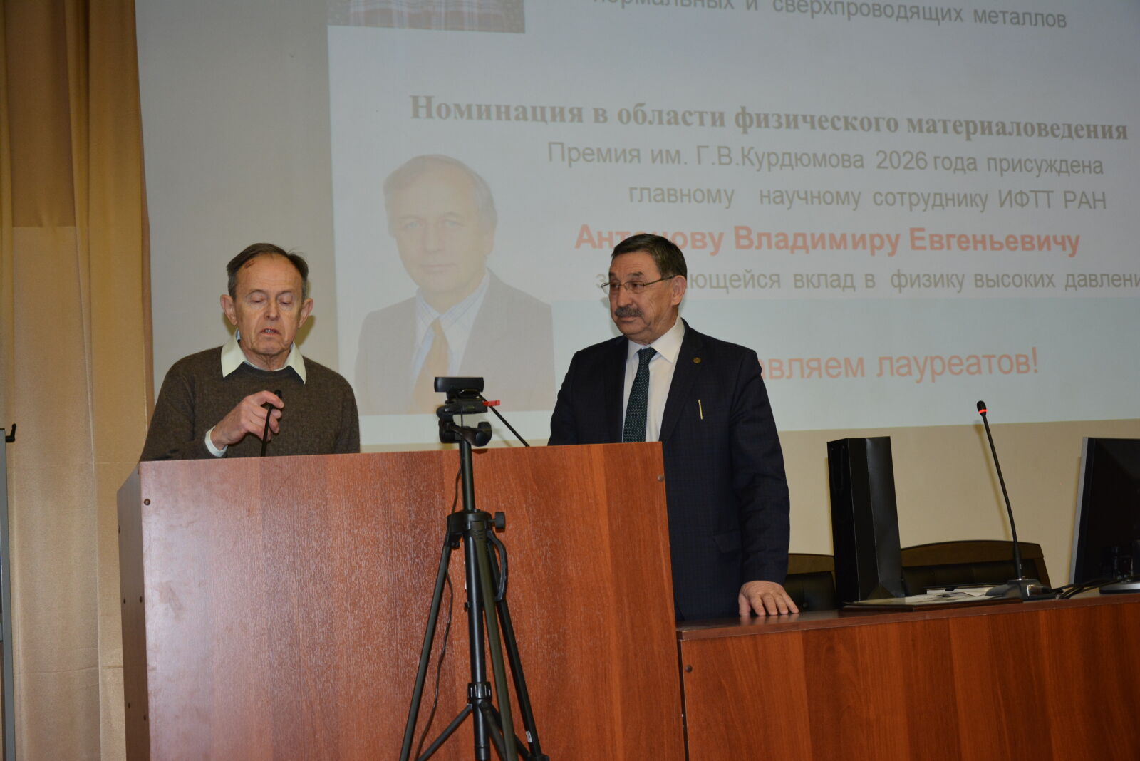 Премия имени Г.В. Курдюмова в 2026 году присуждена главному научному сотруднику, д.ф.-м.н., профессору В.Е. Антонову за выдающийся вклад в физику высоких давлений.