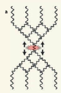 Ковалентные связи между атомами углерода очень прочные. Яркий тому пример – алмаз и углеродные нанотрубки. Для разрыва одной связи C-C требуется сила в несколько наноньютонов, что на молекулярном уровне – довольно большая величина. Тем удивительнее кажется сообщение [1] группы американских физиков о разрыве этих связей при обычной адсорбции углеродных соединений на поверхности твердого тела или жидкости. Авторы [1] изучали адсорбцию полимерных макромолекул на слюде и обнаружили, что адсорбированные молекулы со временем распадаются на мелкие кусочки, см. рис. 1. Причина этого состоит в том, что длинные “хвосты” молекул, притягиваясь к поверхности, создают сильное механическое напряжение, в результате которого в конечном итоге происходит разрыв ковалентных связей, см. рис.2.