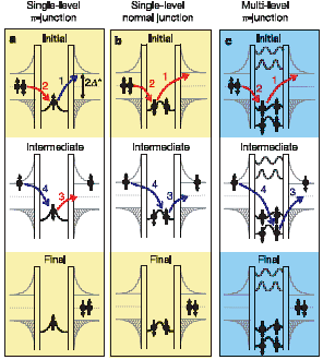 Энергетические диаграммы, иллюстрирующие перенос куперовских пар через квантовую