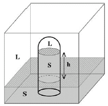 В работе [2] французские физики и их коллеги предприняли попытку прояснить ситуацию. Эксперимент ставился следующим образом. В контейнер с жидким гелием помещали перевернутую вверх дном трубку (см. рисунок), после чего повышали давление до 28 атмосфер. Более плотный ТГ опускался на дно контейнера и “прорастал” в трубку. Затем часть окружающего трубку ТГ быстро плавили. Что можно при этом ожидать, если ТГ способен “течь сквозь себя”? По принципу сообщающихся сосудов уровень ТГ внутри трубки должен понизиться и сравняться с уровнем ТГ вне трубки. И это действительно имело место, причем уровень ТГ внутри трубки опускался с постоянной скоростью, без ускорения, как и положено сверхтекучей системе, движущейся без сопротивления. Но так было не всегда, а лишь в 2 случаях из 12. В других 10 экспериментах уровень ТГ внутри трубки остался неизменным. Детальный анализ микроструктуры образцов показал, что сверхтекучими были лишь те из них, которые состояли из отдельных зерен. Монокристаллы ТГ не «сверхтекли». Логично предположить, что сверхтекучесть немоно-кристаллических образцов ТГ обусловлена сверхтекучестью не твердого, а жидкого гелия, остающегося в небольшом количестве на границах зерен после сжатия.