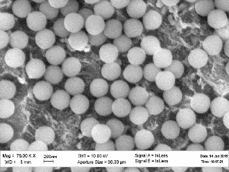 Разработана технология синтеза нано- и субмикронных сферических частиц диоксида кремния диаметром от 20 нм до 2 мкм высокой степени монодисперсности (отклонение от среднего размера < 5% для частиц менее 100 нм в диаметре и < 3% для частиц более 100 нм в диаметре).